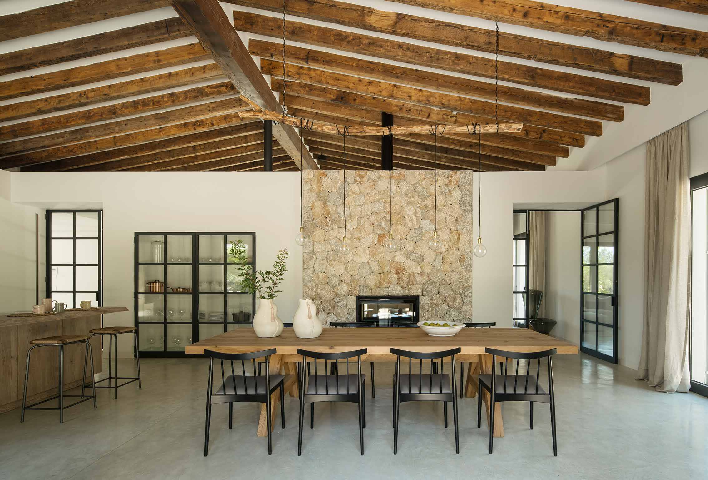 The distribution of the construction is one of its most harmonious elements, in which the daytime area simulates a large agricultural warehouse in the countryside tradition, with a roof of recovered and restored beams. Meanwhile the second unit, situated peacefully away from the rest, is where the night area with large bedrooms is located.
