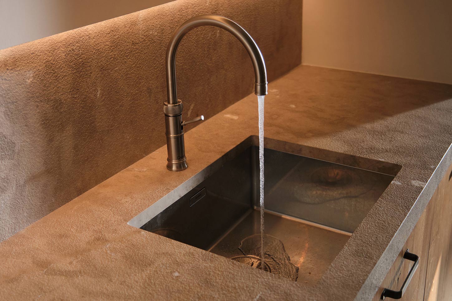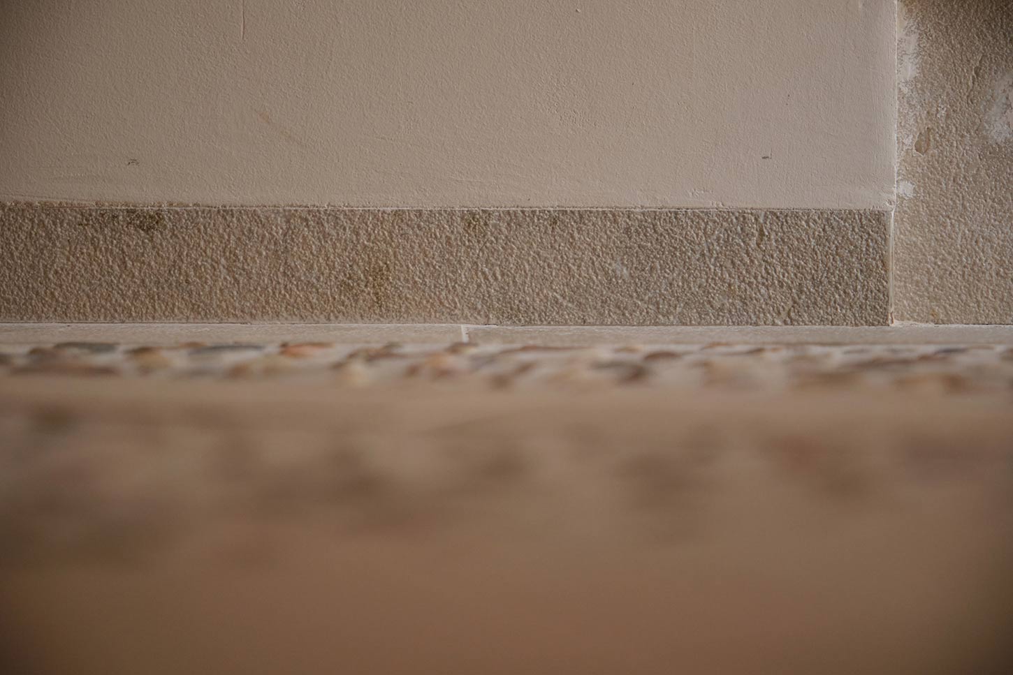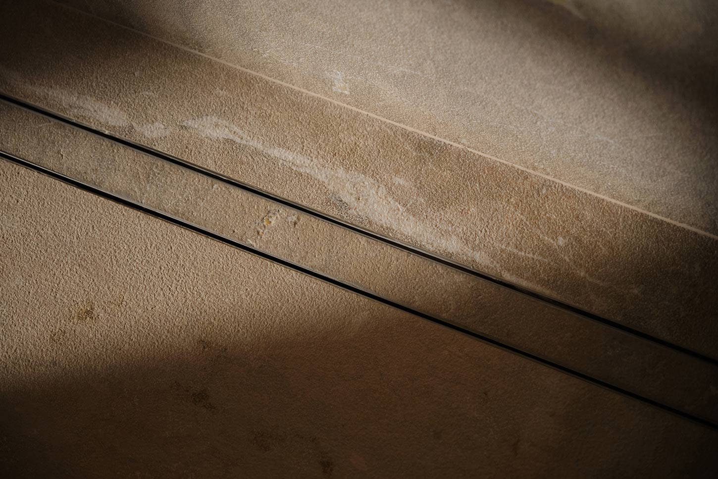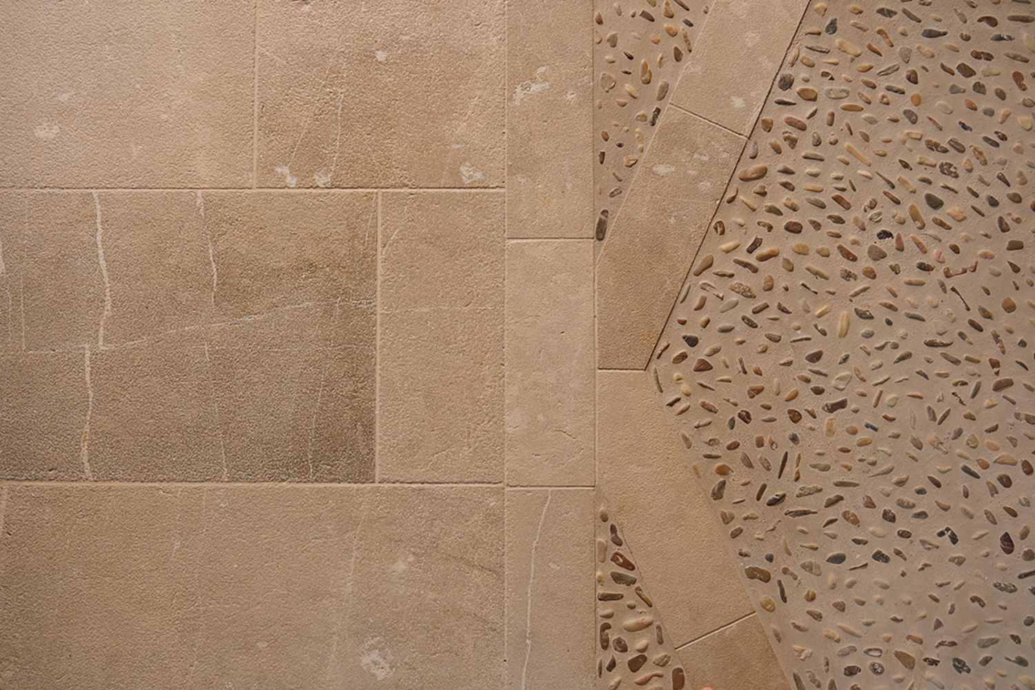 Its materials speak of memory and place: Mallorcan stone beneath the feet, iroko and brushed oak in the carpentry, resistant plasters that protect and beautify, and details in mares recalling the island’s heritage. The stone extracted from the site itself shapes the façade, binding the home deeply to the land that sustains it.