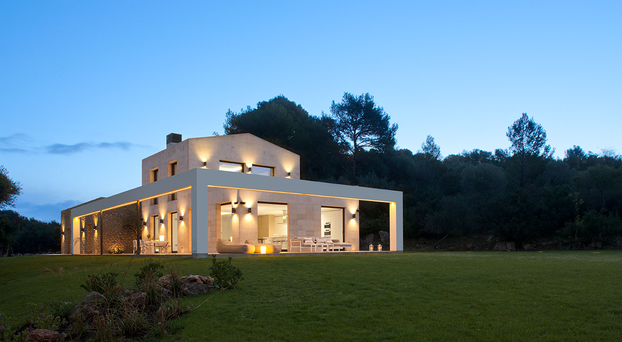 Un proyecto de nueva construcción situado en los límites de la Serra de Tramuntana que otorga unas maravillosas vistas de la isla de Mallorca y destaca por sus volúmenes y formas geométricas. - Una vivienda situada en los límites de la Serra de Tramuntana en la cima de un pequeño monte que otorga unas maravillosas vistas de la isla de Mallorca.
